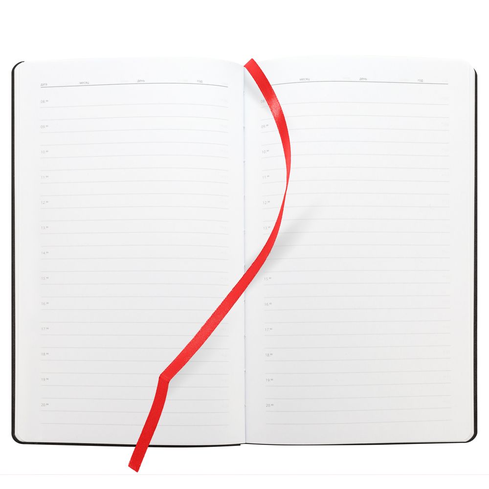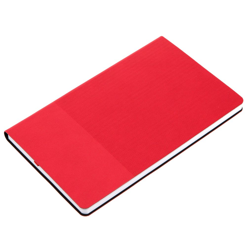 Ежедневник с гибкой обложкой, выполнен из материала Canyon, красный РР, дополнен ляссе в цвет обложки. Блинтовое тиснение на обложке создает эффект вязаного полотна.