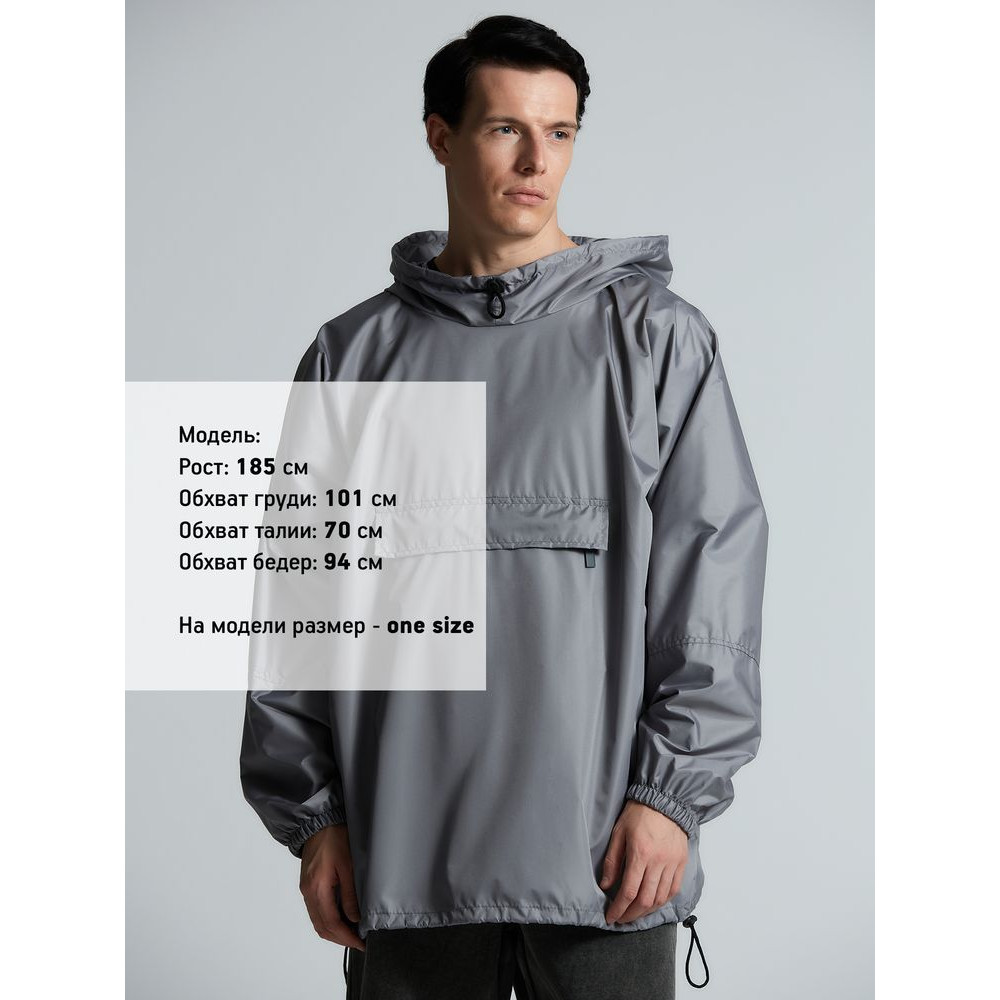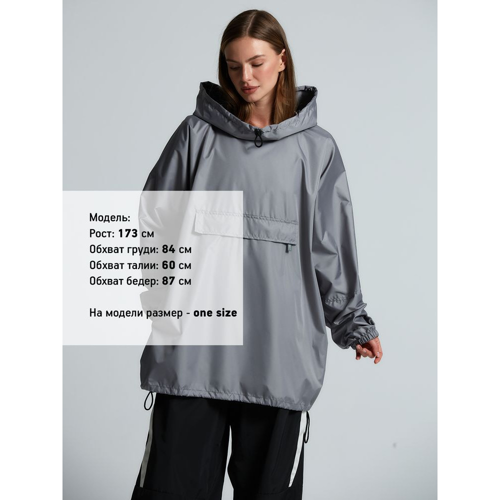 Дождевик-анорак Hard Work, укороченный, серый, единый размер