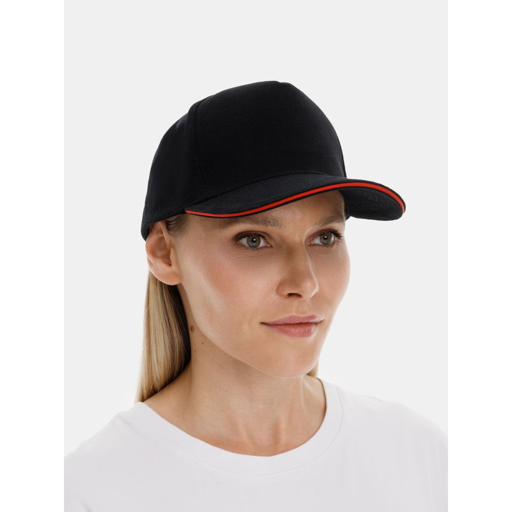Бейсболка Classic 2.0, черная с красным кантом
