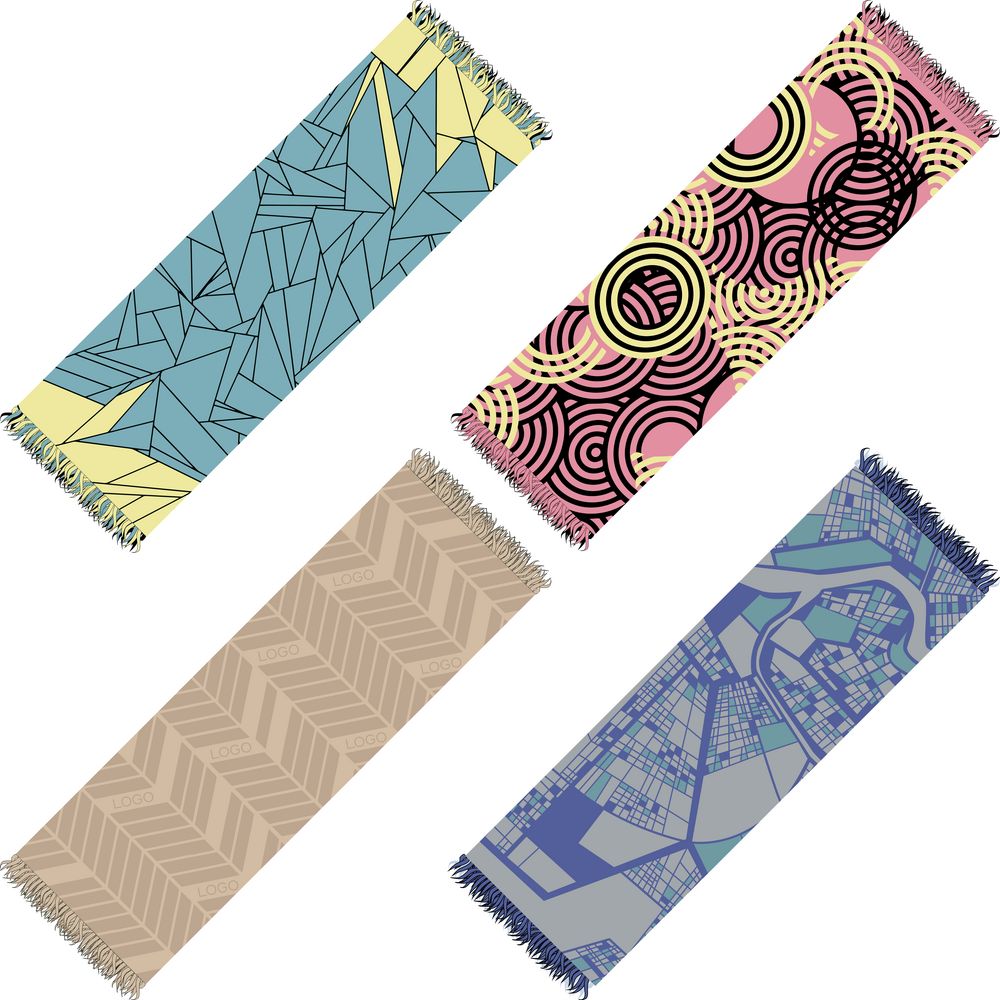 Модель: палантин жаккардовой вязки, плотный и теплый, 2-3 цвета нитей, гладкая поверхность, вывязанная бахрома длиной до 10 см. Воспринимается как односторонний из-за ряби на изнанке.