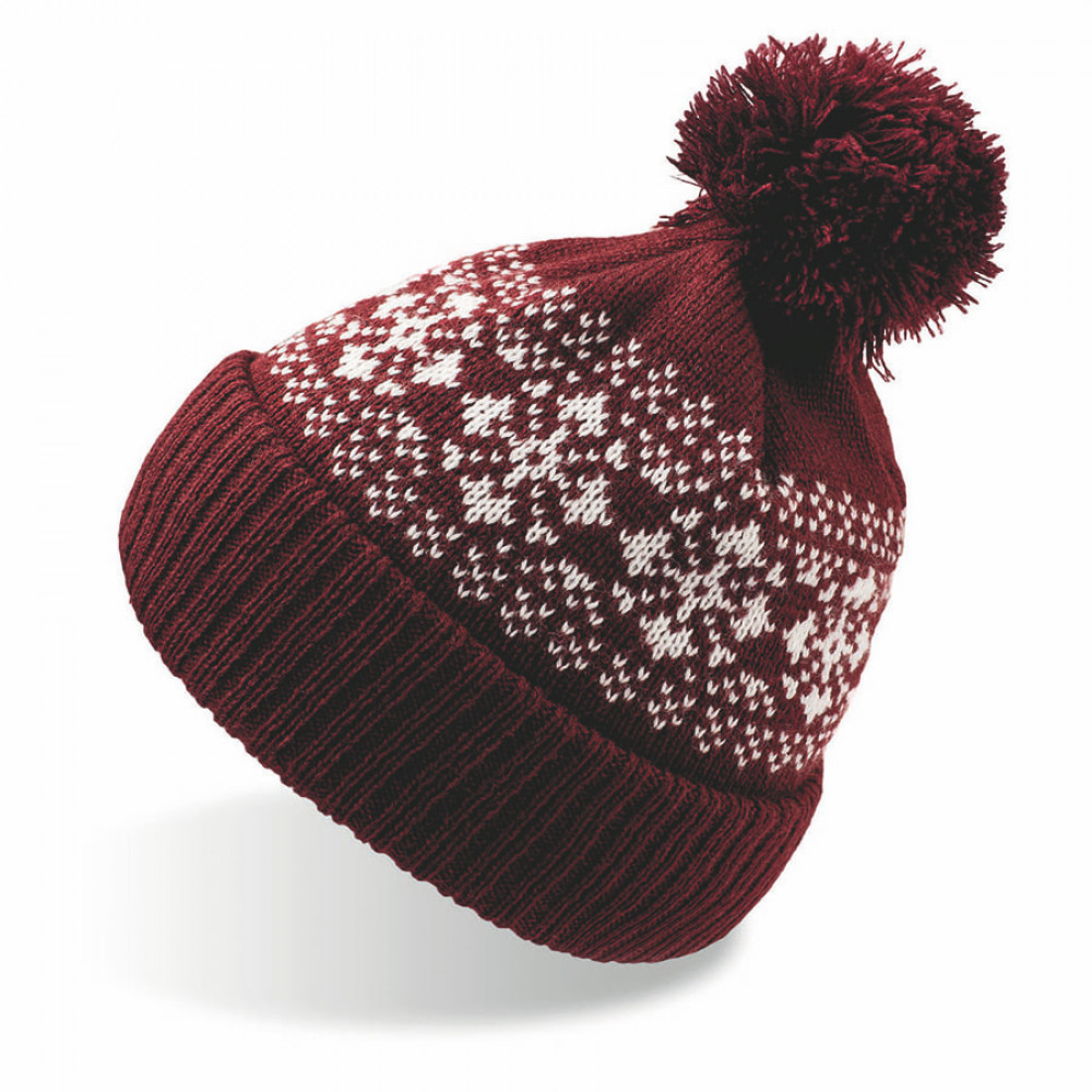 Параметры: Шапка вязаная с снежинками и помпоном "FLAKE"_бордо, 100% акрил