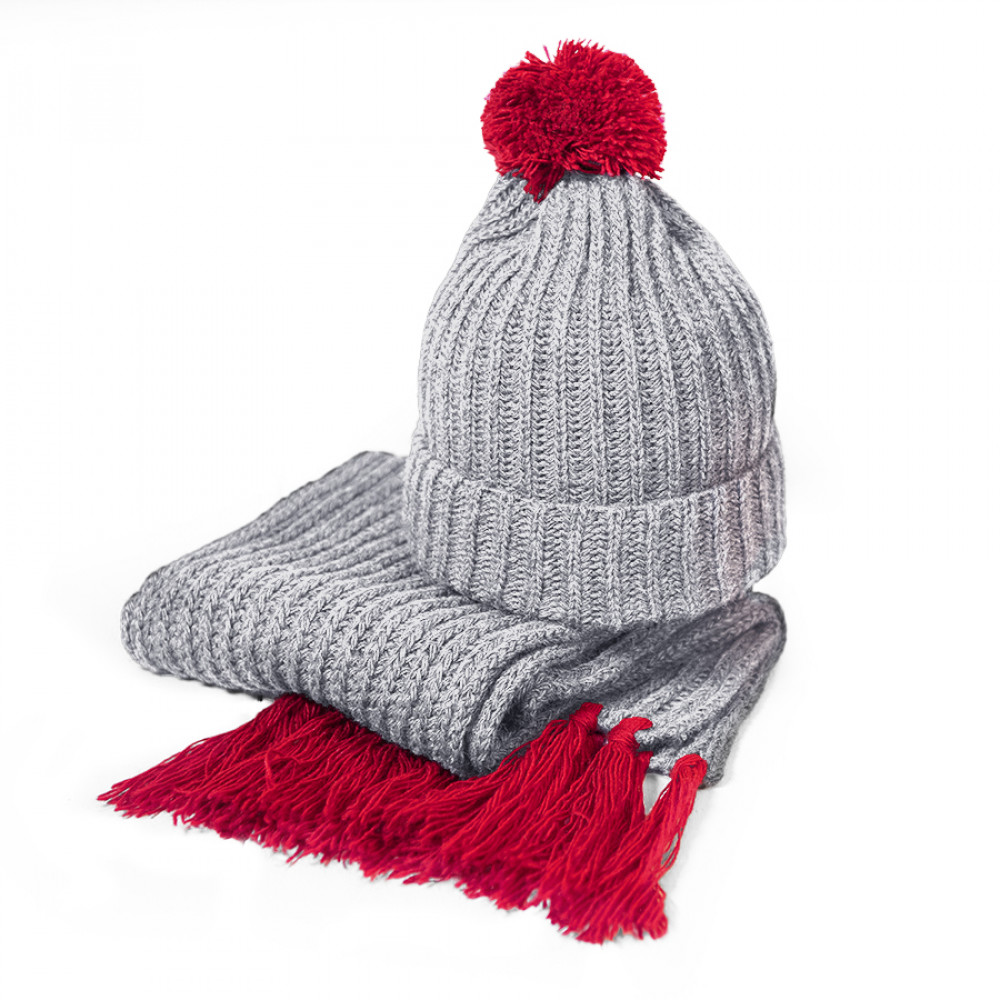 Параметры: Вязаный комплект шарф и шапка GoSnow, меланж c фурнитурой, красный, 70% акрил,30% шерсть
