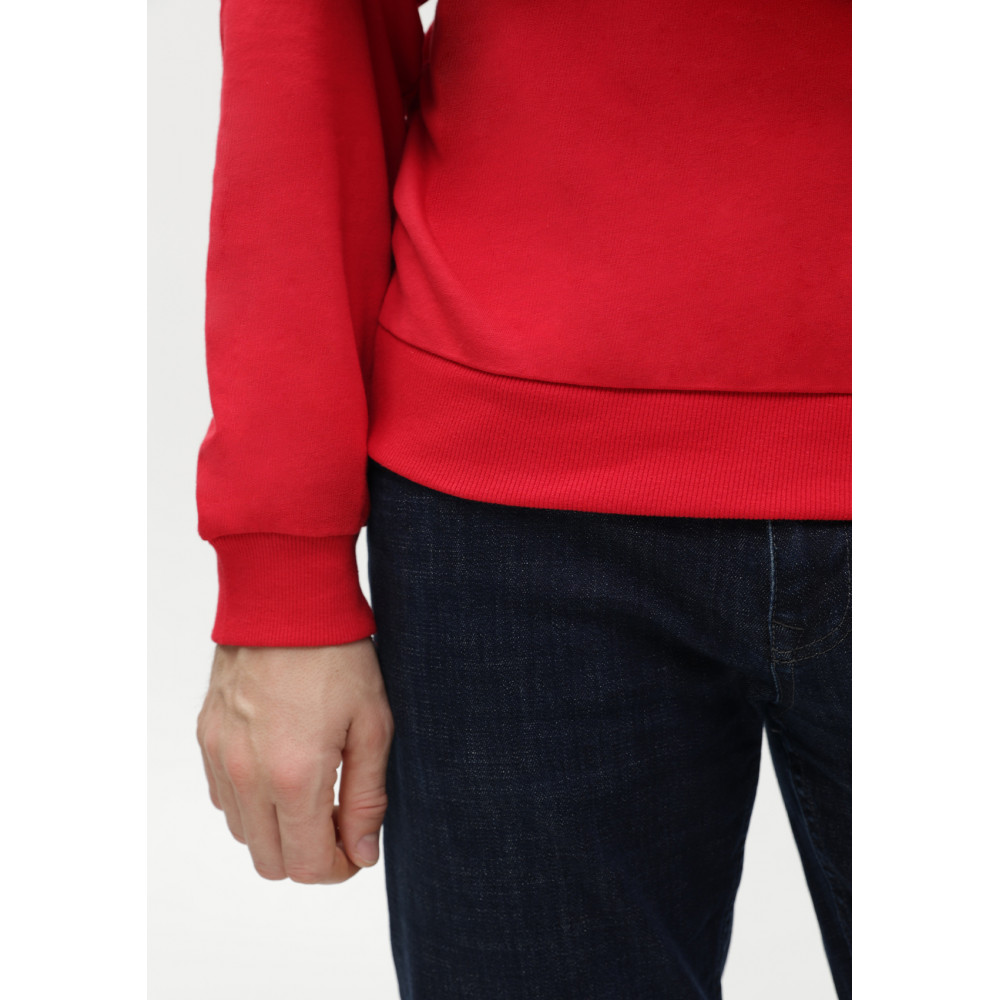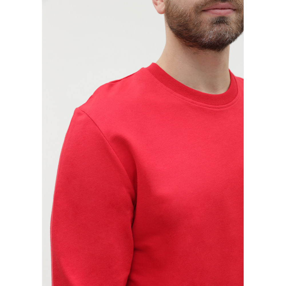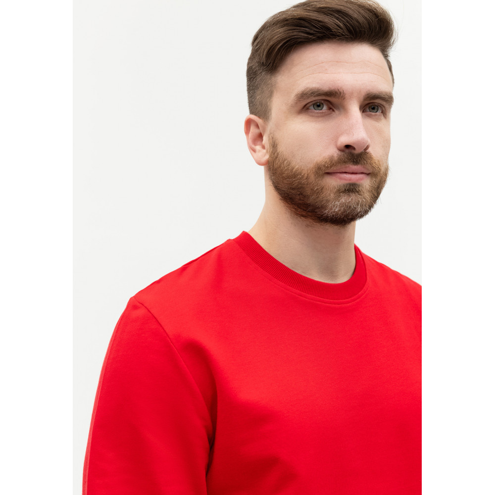 Свитшот выполнен из мягкого и плотного хлопкового футера. Изделие приятное к телу, хорошо пропускает воздух и быстро отводит влагу, не теряет форму со временем.
