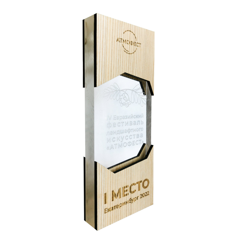 Параметры: Приз из акрила 3-слойный (два слоя дерева) с УФ-печатью