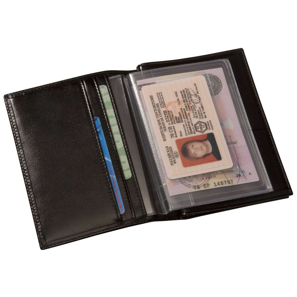 Бумажник водителя: 6 пластиковых карманов (в том числе для документов водителя, доверенности, страхового полиса), за ними — 5 карманов для пластиковых карт.